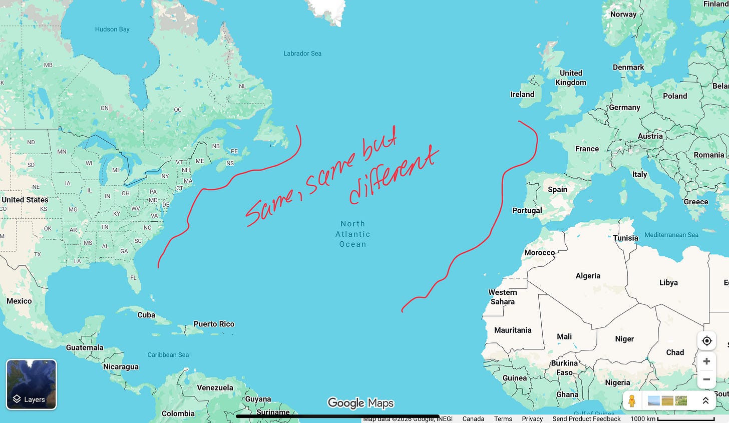 I’ve argued before that it is easy to see your long history when you come from the sea coast because your long-lost-lover (the opposite coast) is not far across the ocean and you were once part of the same whole. The cod fishermen in Newfoundland, and their Basque brethren are so intimately linked that they bicker about who first established a commercial cod fishery2.