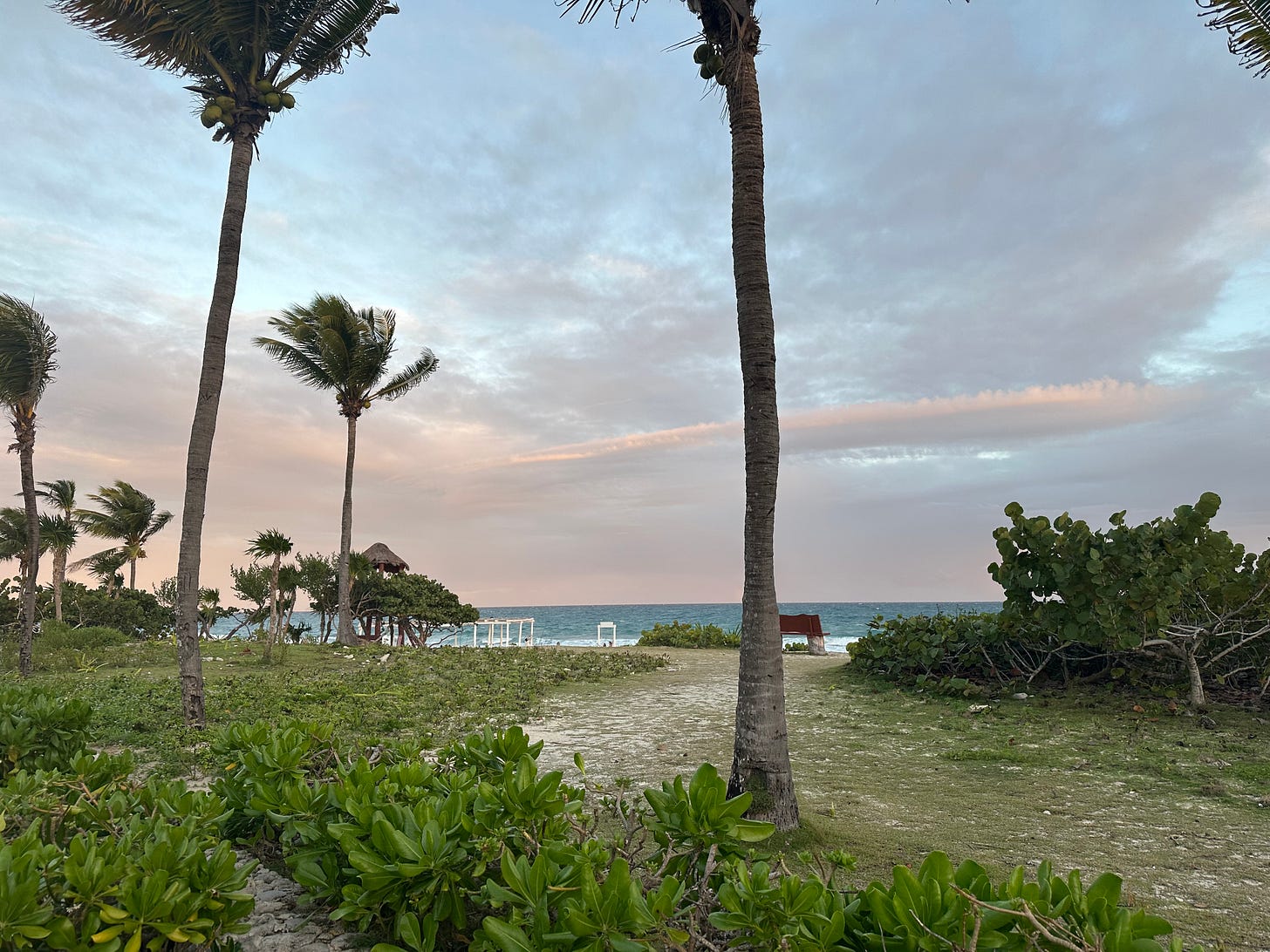 On the Mayan Riviera, the light-darkness cycle is almost perfectly split down the middle in January. You wake naturally with daybreak, just before 7:00am, and make your way outside to enjoy morning PT on the beach7. The sun rises slowly, giving you that essential red-light therapy you need for your AM systems to boot into gear.
